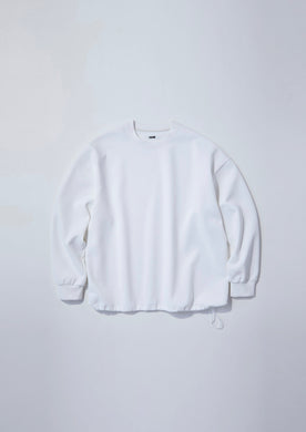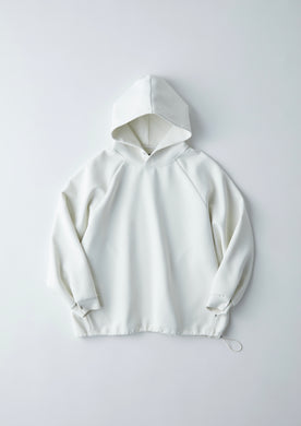 厚手で身体のラインを拾いにくいこととドロスト付きでシルエットの調整ができること、何よりECRUカラーで清潔感を演出することができます。