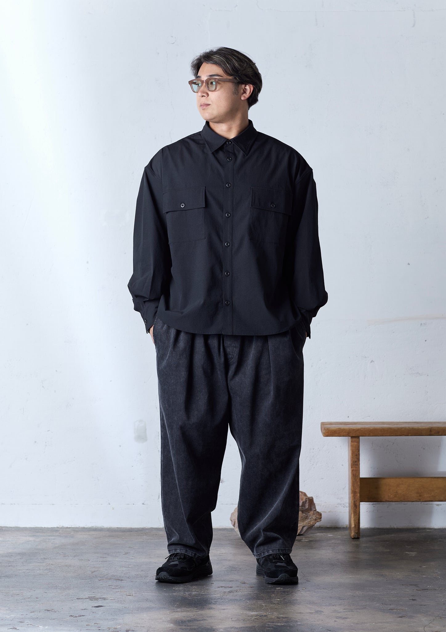 carorieらしく、無駄な装飾を削ぎ落とし、シンプルで飽きのこないデザイン。身体の動きにあわせて、程よくストレッチが効き、ミリタリーアイテムを現代的にアップデートする生地。大柄の方が、かっこよく着れる。大柄の方が、快適に着られる。そのどちらも叶えた一着に仕上がりました。