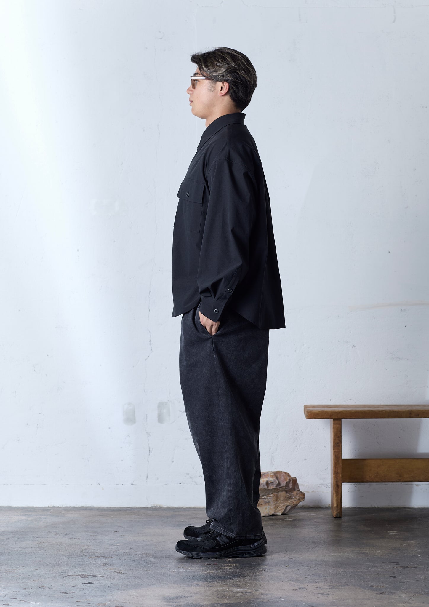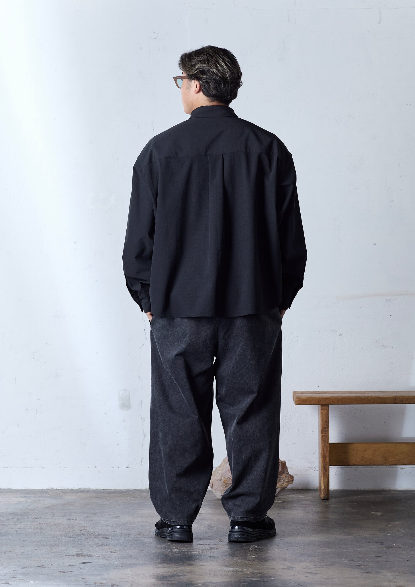 大柄の方がゆったりと着られるよう、後ろ見頃にはタックを入れ、身幅は広めに。第1ボタンまできちんと閉まるよう首回りも広めに設計し、なおかつ窮屈さを感じづらいよう台襟の高さを通常より低めにしています。一般的なオーバーサイズのシャツでは、「オーバーサイズになっていない」ことで窮屈さを感じるアームホールや袖口も、通常のシャツよりも太めの仕様となっています。