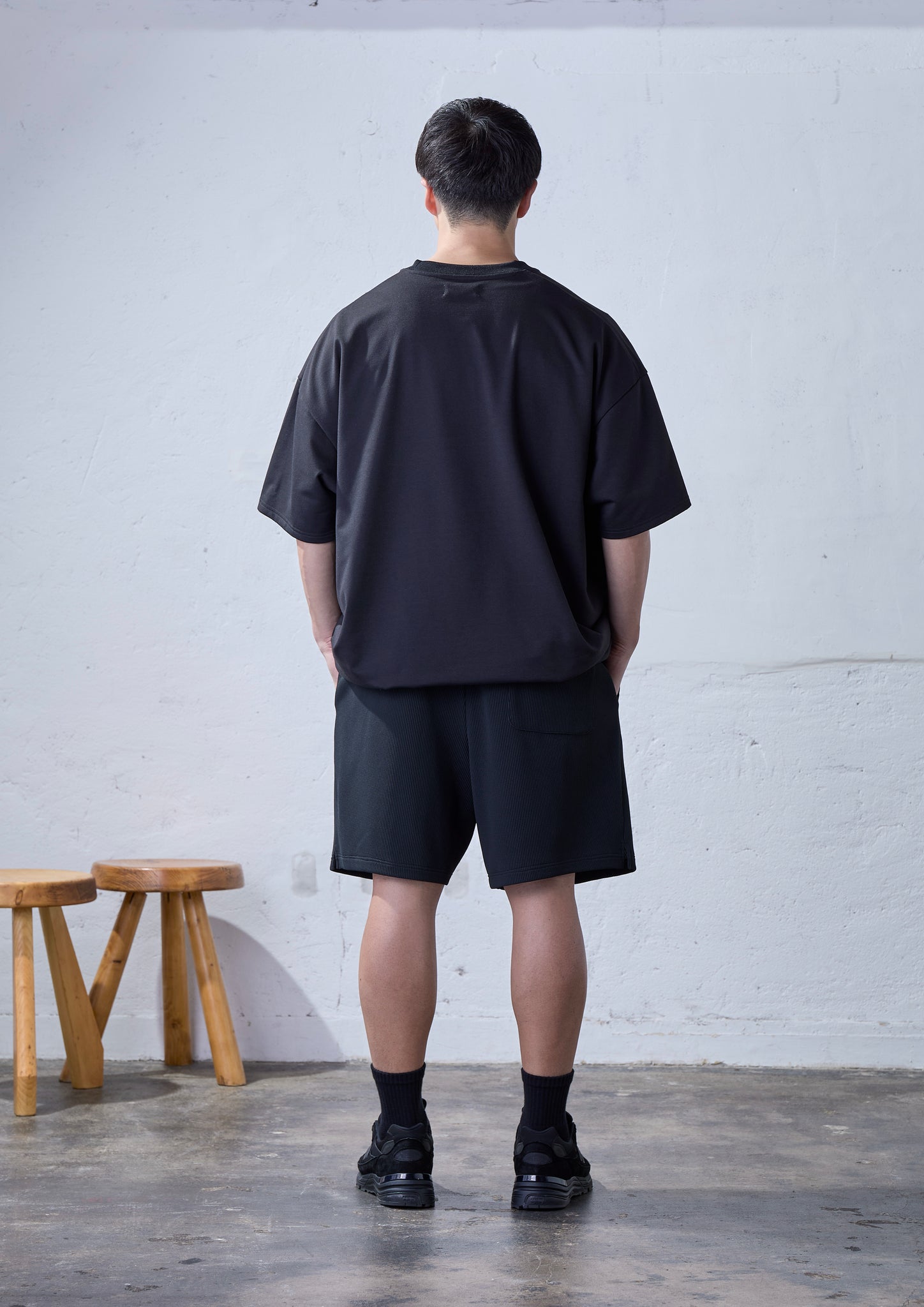 今回のアイテムは、適度な肉感はあるんだけど、通気性が良いワッフル生地に一目惚れして作りました。少し前にメッシュシリーズのショーツも出しましたが、同じぐらい通気性もあって、でも見方によってはストライプに見えるようなスタイリングのアクセントになる一着です。