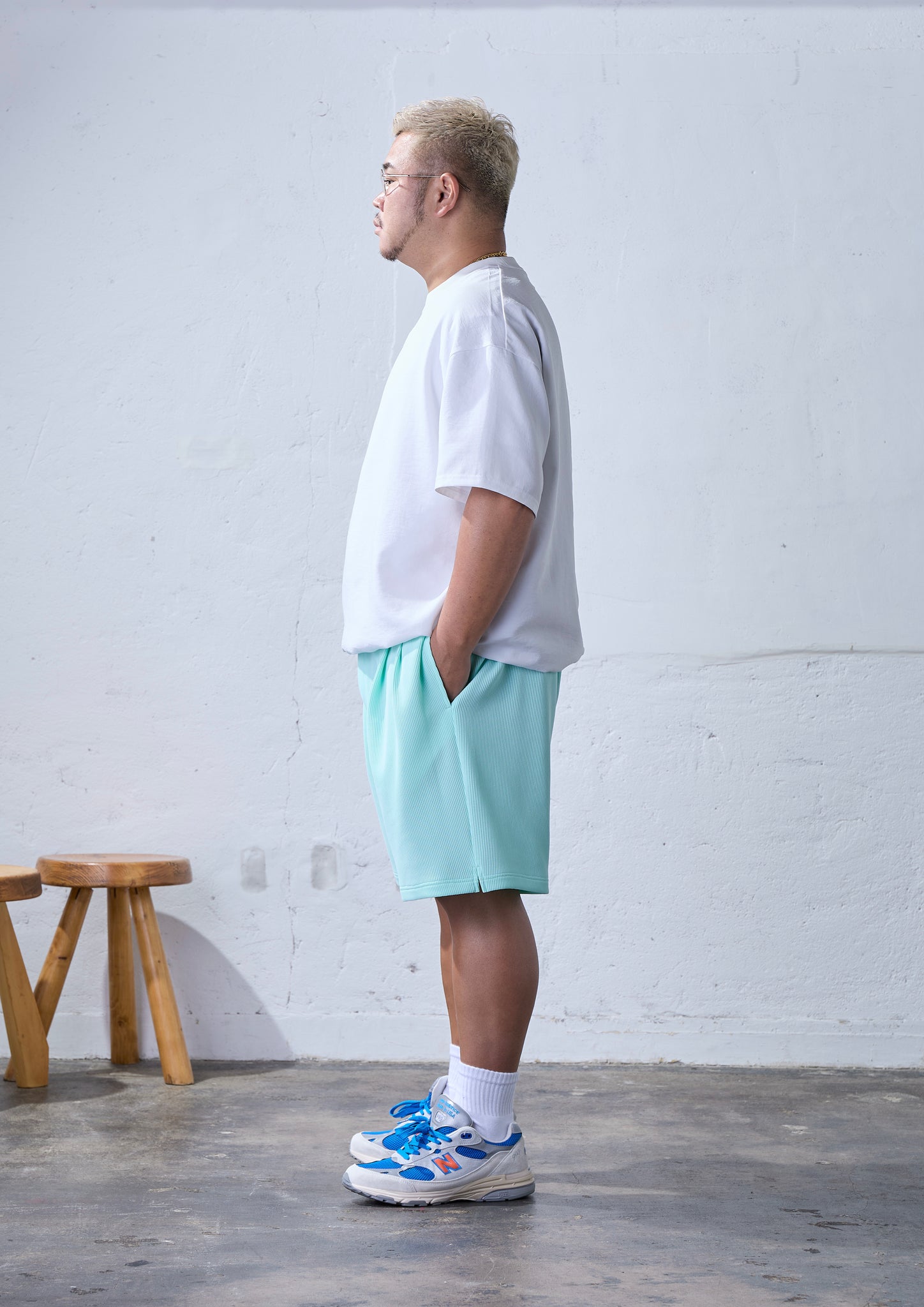 今回のアイテムは、適度な肉感はあるんだけど、通気性が良いワッフル生地に一目惚れして作りました。少し前にメッシュシリーズのショーツも出しましたが、同じぐらい通気性もあって、でも見方によってはストライプに見えるようなスタイリングのアクセントになる一着です。