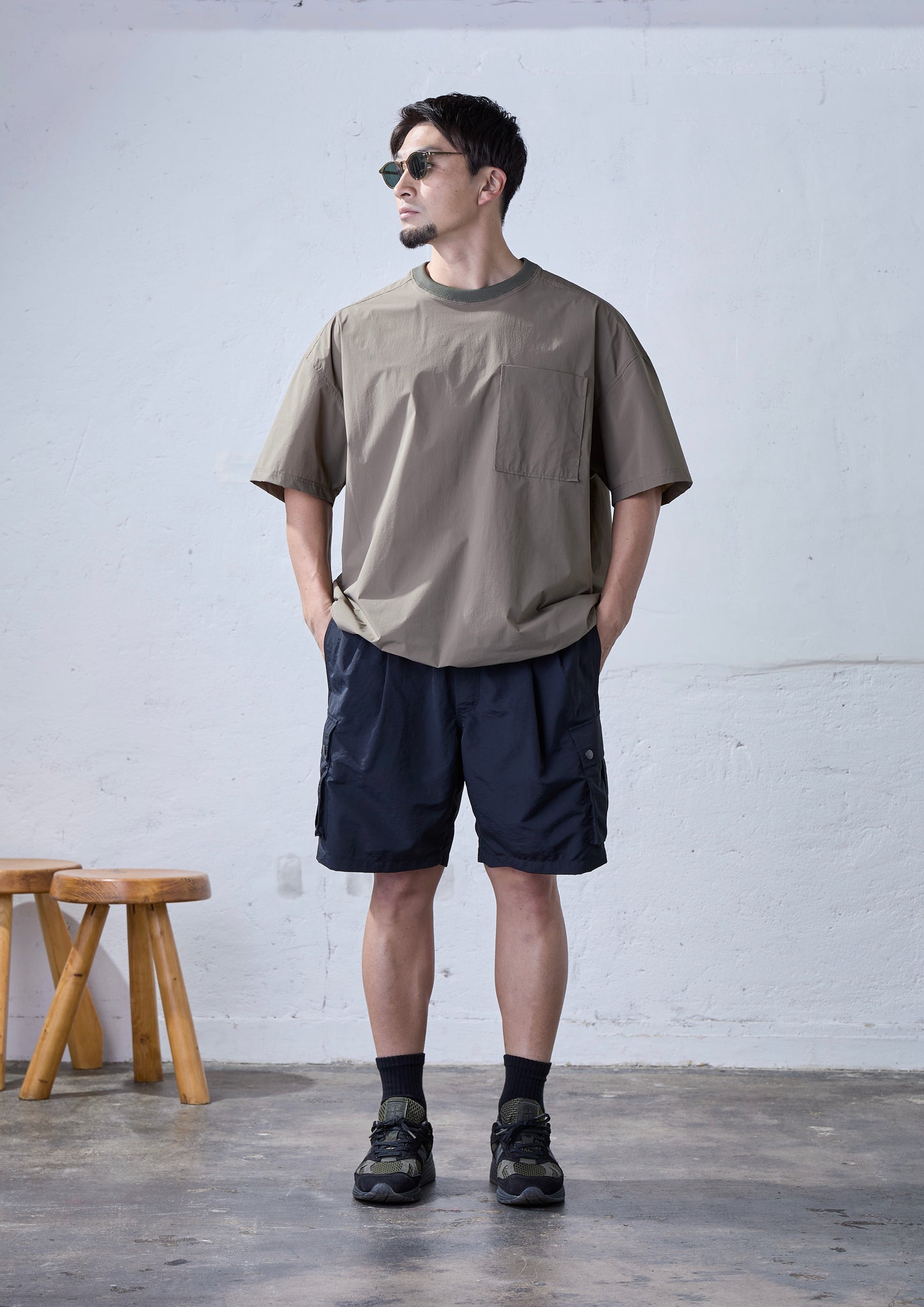 手にとった瞬間、思わず驚いてしまうほどの軽さは、LIGHT SO STRETCH NYLONという薄手の素材によって実現。接触冷感や撥水加工を施しているため、汗をかくような暑い日や、アクティブなシーンの着用にも最適。たてよこ両方向の伸縮性に優れているため、動いても窮屈さを感じづらく、快適に着用することが可能です。