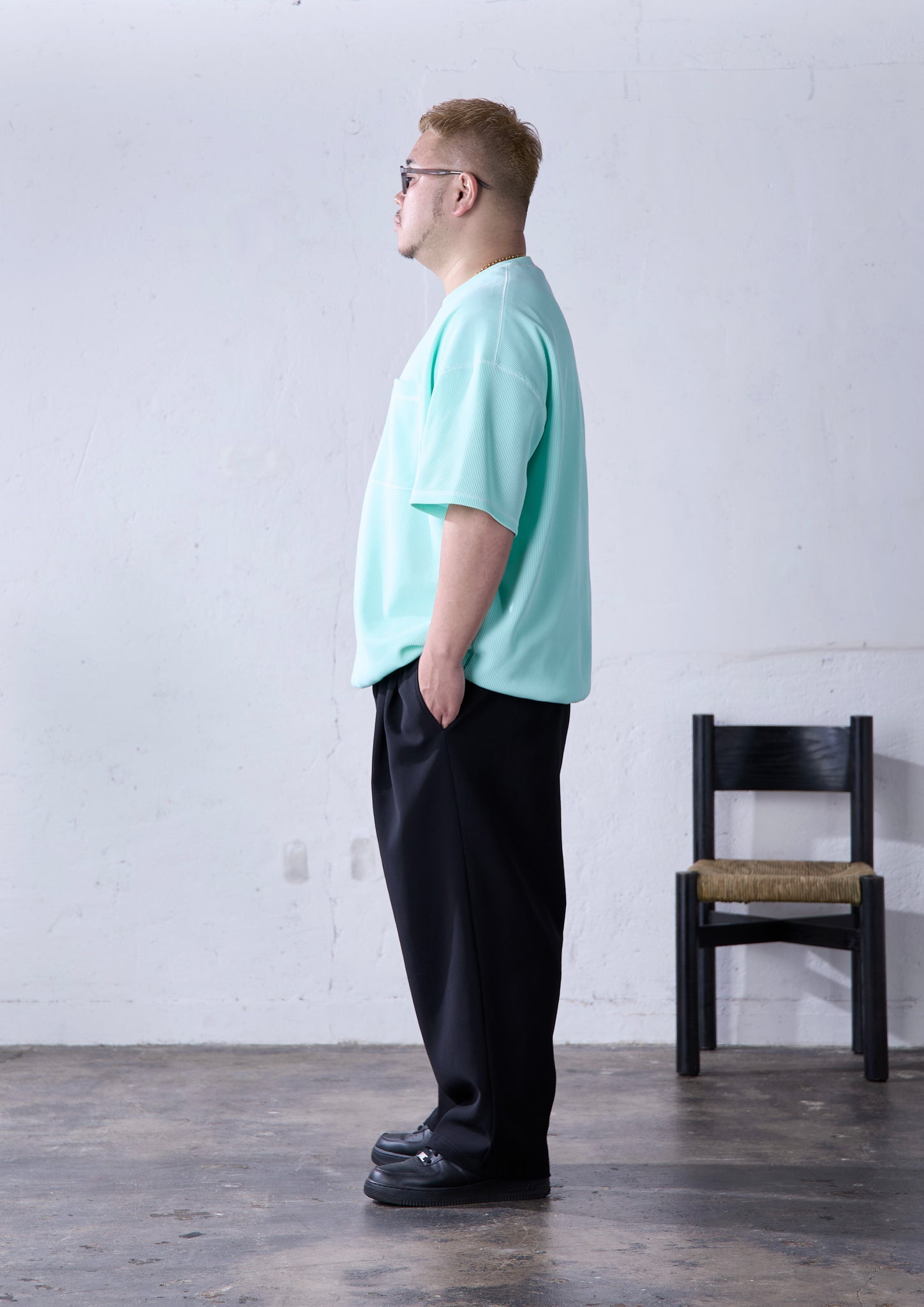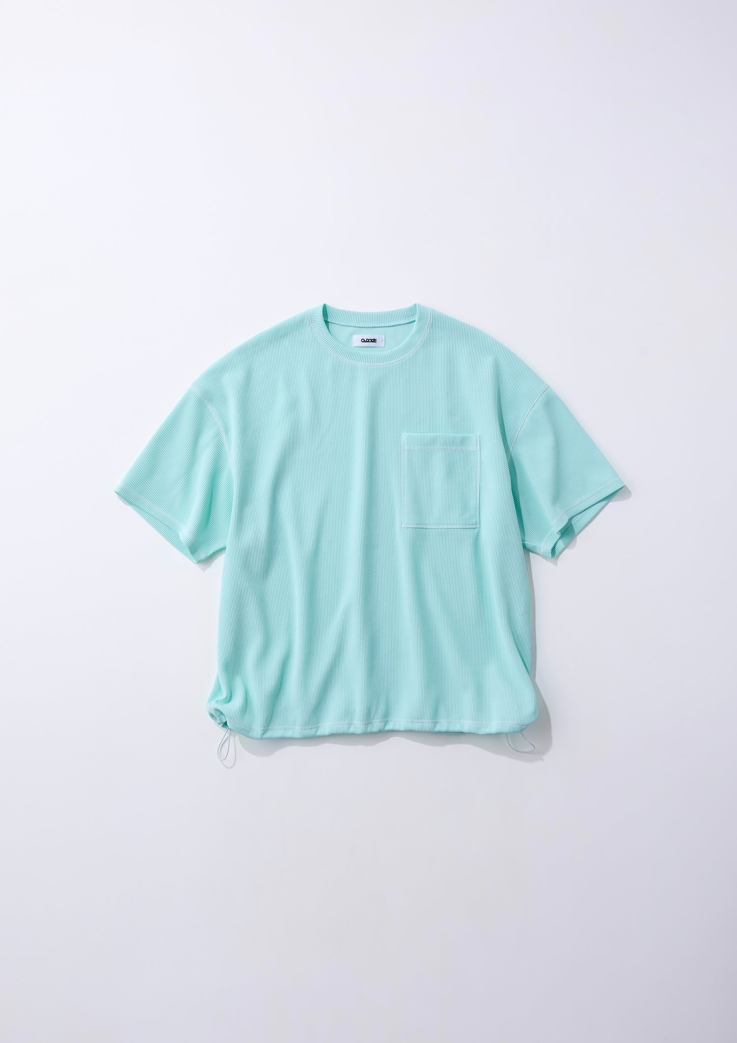 ワッフル生地というと、いわゆるコットンで出来たものが定番で、秋冬のイメージが強いと思います。一方で、このアイテムはポリエステルの生地を使っているため、コットンワッフルでありがちな洗濯で目が詰まったり、縮んだり、着たとき肌にまとわりつくといったネガティブな部分が解消できているなと思っています。