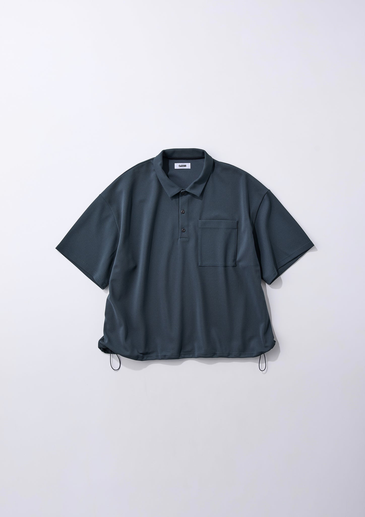 一般的なポロシャツで、身幅が合うものを着てみたら、着丈がワンピースくらい長くなってしまった。なんて経験ありませんか。一方このアイテムでは、大柄の方でもゆったり着られるよう、身幅をたっぷりとったcarorieらしいボックスシルエットを採用。裾口にはドローコードを採用しているため、体型やその日の気分に合わせてシルエットや丈感を調整することが可能です。