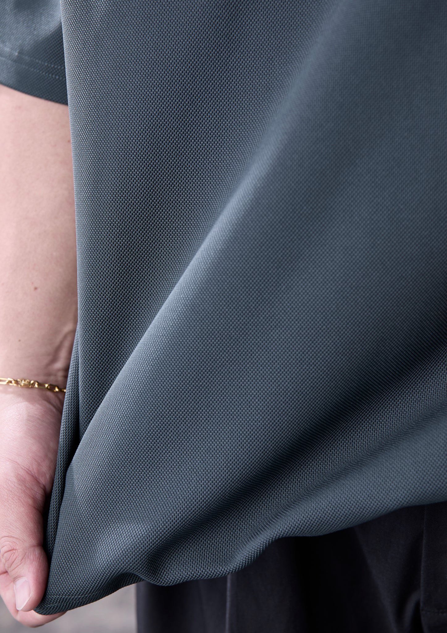 仕事柄、真夏に仕事で人と会う時や、目上の方と会食にでかけることがあります。でも、綺麗な格好をしていくのも億劫で。そんな時に重宝しているのがポロシャツです。昨年リリースしたものも実際着てみて、一番のメリットはTシャツに襟がついているくらいの感覚で、ばさっと着れること。その気楽さと快適さが気に入っています。僕と同じように「ビジネスの時に着ている」という声も多かったため、すごく細かいところですが、襟下のボタンも生地と同色系のものを採用しています。