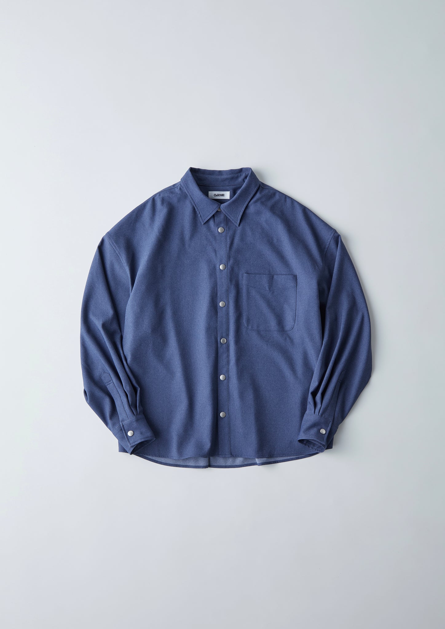 これまでベーシックで使いやすく、大柄の方が長くご愛用いただけるアイテムを展開してきたcarorie。今回リリースするのは、その中でも存在感が際立つ、フロントボタンのメタルがデザインのアクセントになっている、デニムライクなシャツです。